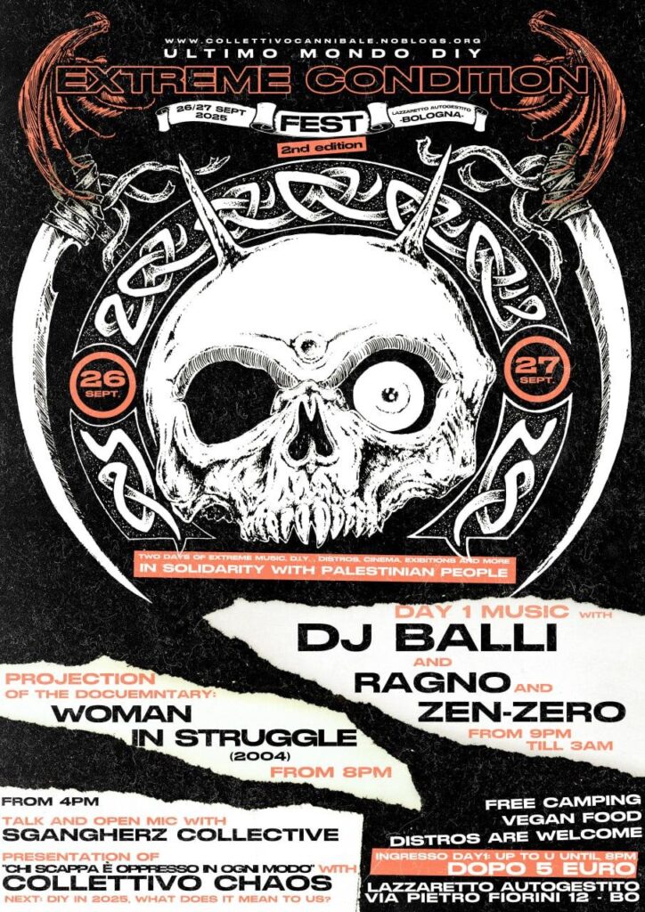 Due giorni di musica estrema e contenuti condivisi in uno spazio libero e autogestito. Venerdì: dibattiti, proiezioni e confronto. A seguire, DJ set selvaggi con Zen Zero selecter e DJ fuckin’ Balli.